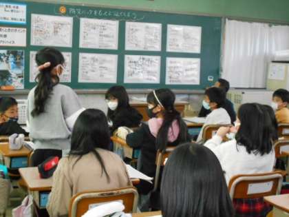 家から持ってきた防災バッグを,友だちの考えを参考によりよいものにします。「水,食料,ラジオ,ライトはみんな大事だと思っている。」「たくさん入れると重すぎるので非難するのが大変になる。」などの意見が出ていました。