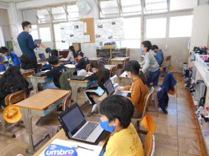 学習のまとめを行います。プリントやパソコンで復習をして習熟を図りました。