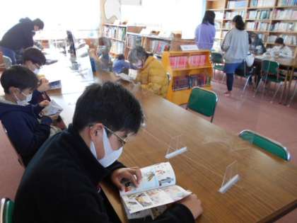 様々なジャンルの本を手に取り,静かに読書をしています。