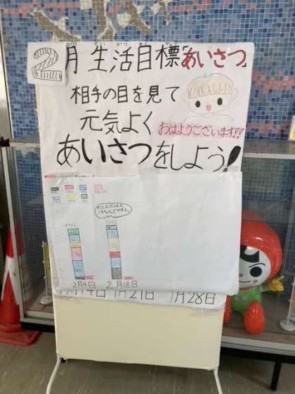 今日の集計結果はしばらく張り出しておきますので、自分のあいさつを振り返るようにしましょう!