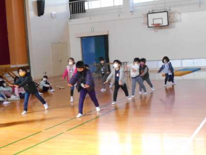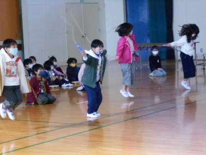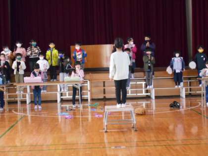 1年生が自分の成長を振り返り,できるようになったことを6年生に向けて発表しています。詩の暗唱,英会話,縄跳び,マット運動,堺っ子体操,合奏と一生懸命頑張る姿が素敵でした。