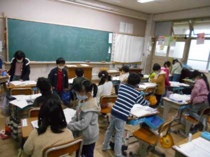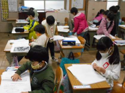 年度末あたり,学習の成果物をよいこノートに貼って,整理していきます。配布されたプリントを糊を上手に使って貼り付けていました。