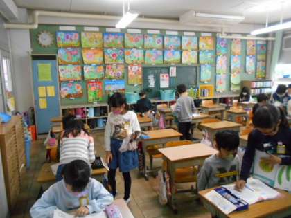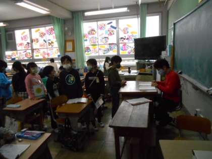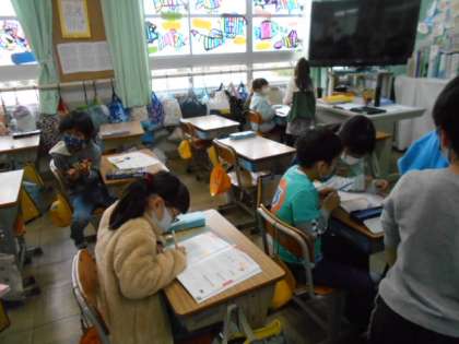 学習したことを振り返り,練習問題に取り組みます。友達と確認し,先生の点検を受けました。