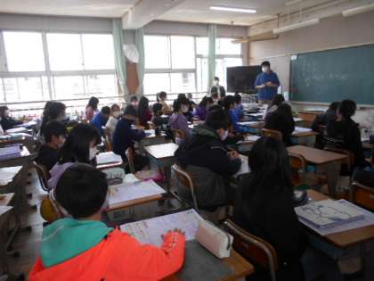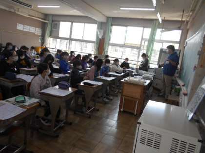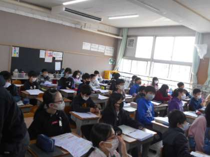 返却されたテストをもとに,みんなで振り返り学習をしています。今日は,記号を使った式のテストが返却されました。xやyを使った文字式につながる単元です。