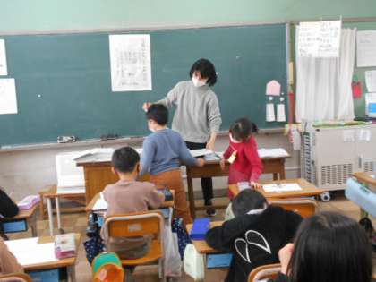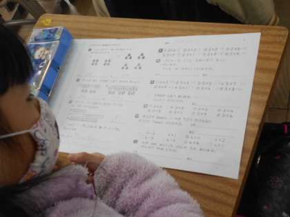 まとめのプリントに取り組んでいます。できたら先生に見てもらいます。自分のペースに合わせて学習しています。