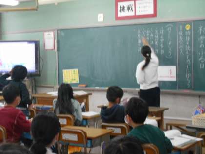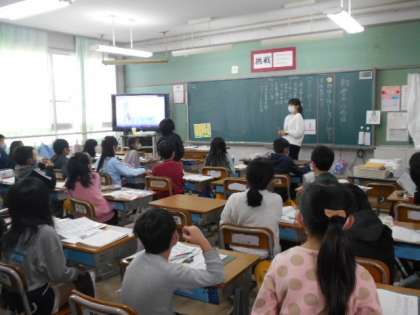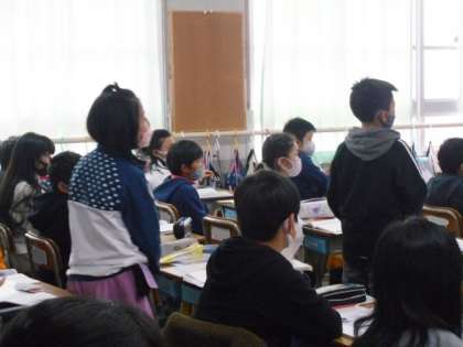 どんなお話だったかをみんなで話し合っています。「〇〇さんと同じで・・・」「〇〇さんと反対で・・・」など,友だちの意見をよく聞いて発表しています。