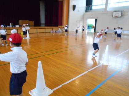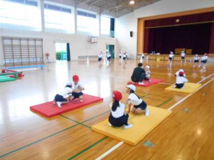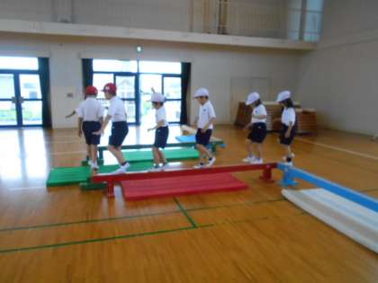 楽しい音楽にのって,バランスをとったり,ジャンプしたりと楽しみながら,身体を動かしていました。