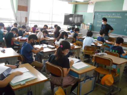 4年生は2クラスを3分割しての少人数指導をしています。どの教室でも,問題を一生懸命考えている子どもたちの姿が見られます。