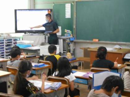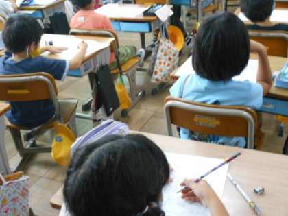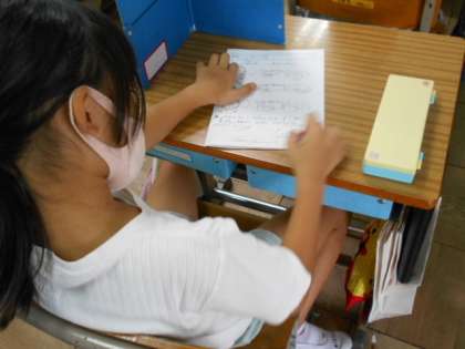 先生と一緒にプリントの答え合わせをしています。間違ったところは,これから正しく答えられるように頑張っています。