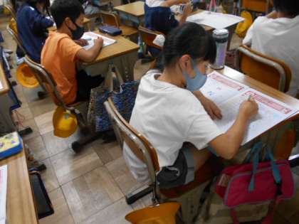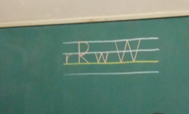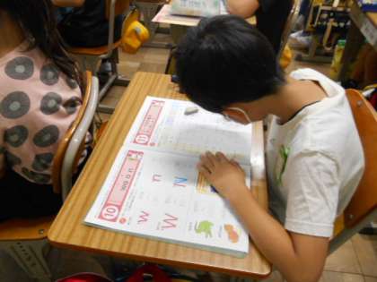 大文字と小文字の練習をしています。どの位置に書くのかをよく確認しています。