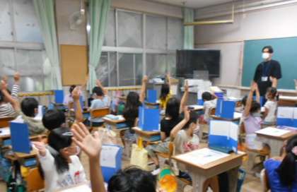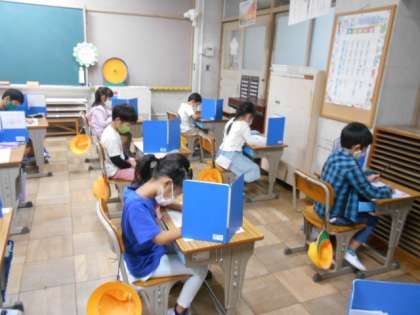 テストをします。できたらしっかりと見直しをすることをみんなで確かめ合っています。