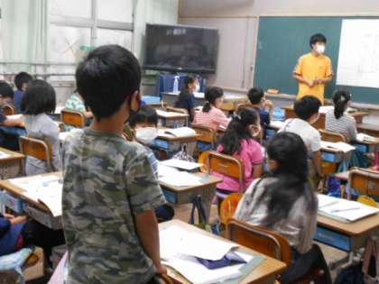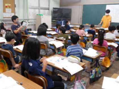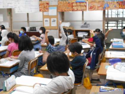 文章をもとに場面の様子を読み取っています。ちいちゃんの心情に注目しています。「グー」のサインは友達の意見と「同じ」だという意思表示です。