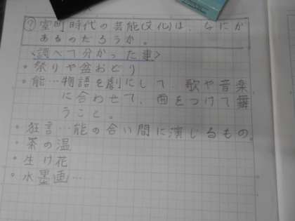 室町文化についてデジタル教科書を使って調べています。わかったことをノートにまとめています。