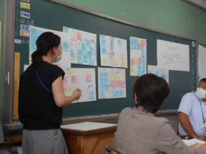 各グループで話し合ったことを出し合い,その後田中あき子先生に,指導助言をいただきました。「野田の町のよいところ」を伝えたいという子どもの思いを大切にする大事さを学びました。