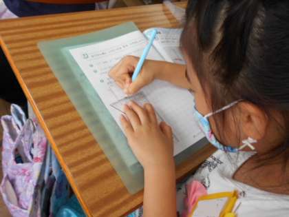 たてとよこの長さの決まった長方形をかきます。1ますが1センチメートルの方眼を使ってかいています。