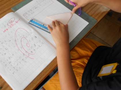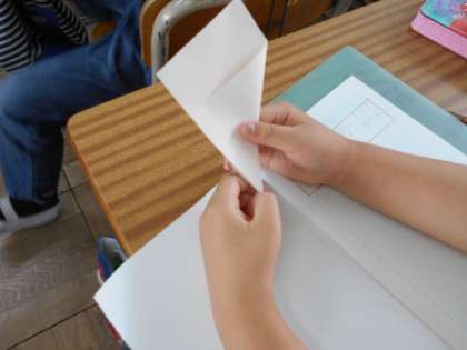 決められた場所で折ってできる形はどんな形でしょうか。考えながら折っています。