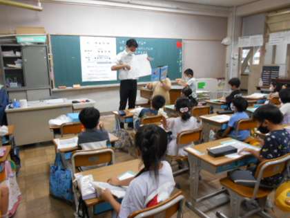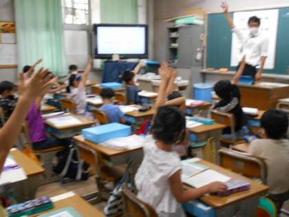 3つの数のたしざんです。4+3+2も計算できるのでしょうか。ブロック図でを使ったり,計算を2つに分けたりして考えています。