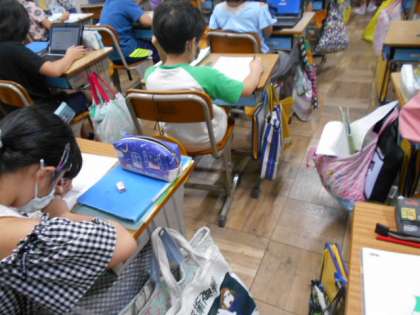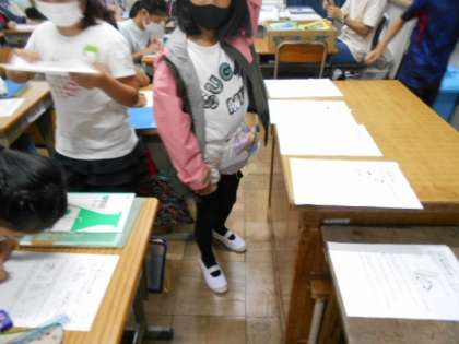 「風やゴムを利用した物」についての確かめのプリントをしています。終わったら別のプリントにもチャレンジです。