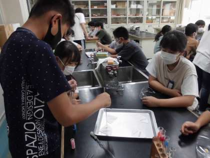 理科「水溶液の仲間分け」の実験を行いました。リトマス紙を使って,それぞれの水溶液の性質を確かめています。