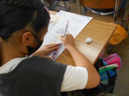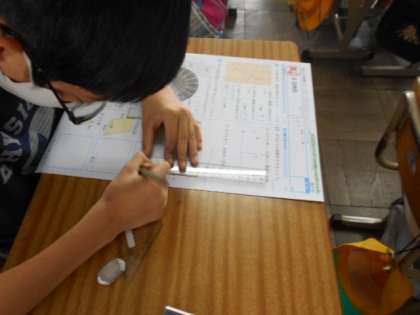 みんな一生懸命取り組んでいます。ものさし,三角定規,分度器なども使っています。