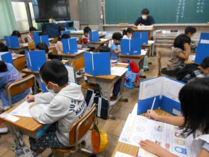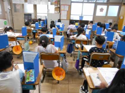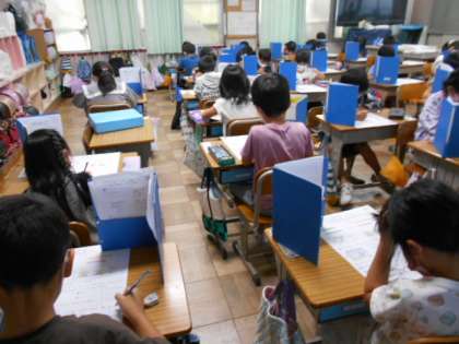 「なんじ なんじはん」と「どちらがながい」のテストをしています。一生懸命取り組んでいます。