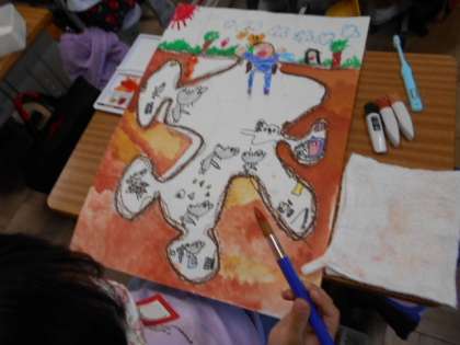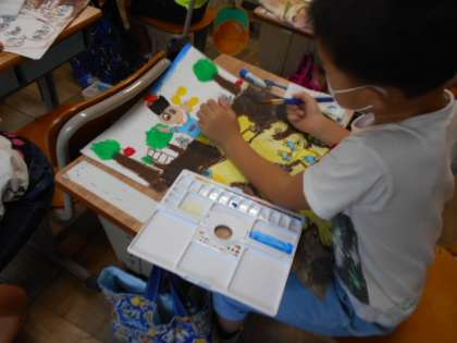 もし,自分が「おむすびころりん」の世界に行ったら,穴の中はどんな様子になっているでしょうか。どの作品もとても楽しく表現されています。
