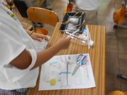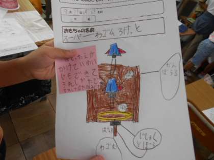 身近な素材をもとに,動くおもちゃを作ります。設計図もかいています。