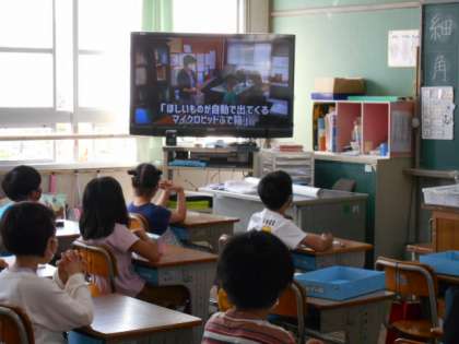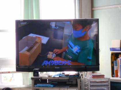 そのあと,毎日新聞社賞を受賞した「ほしいものが自動で出てくるマイクロビットふでばこ」の紹介がありました。プログラミングを取り入れた,たくさんの工夫がみられ,各教室では歓声が上がっていました。