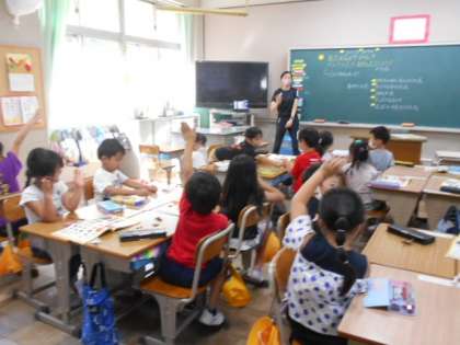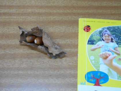 見つけた葉っぱや木の実を使って遊びます。どんなことができるでしょうか。