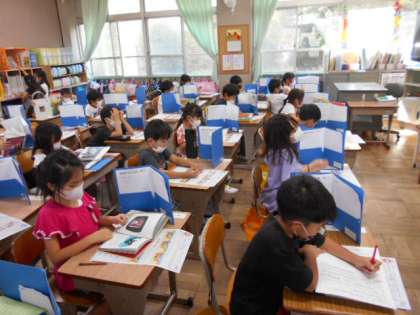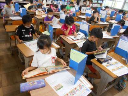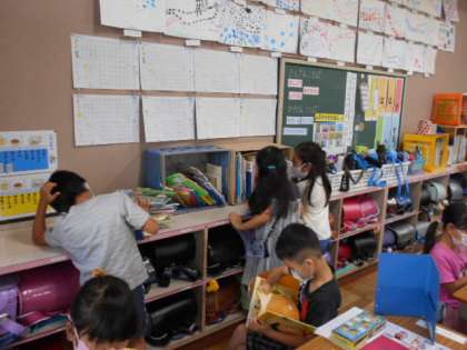 算数のテストに取り組んでいます。できた人から読書をして静かに待ちました。