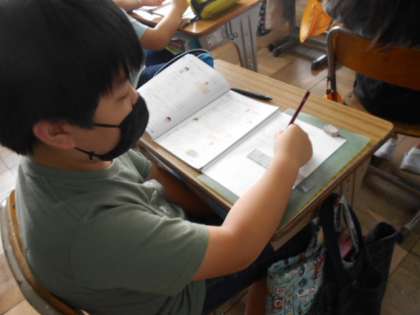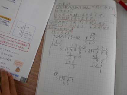 「はやく・かんたん・せいかく」の「は・か・せ」の方法で,計算問題を解いています。