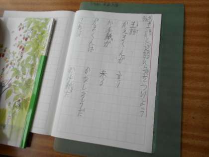 主語と述語について学習しています。「だれが(なにが)」「どうした(どうする)」は文章の中で大切な働きをしますね。