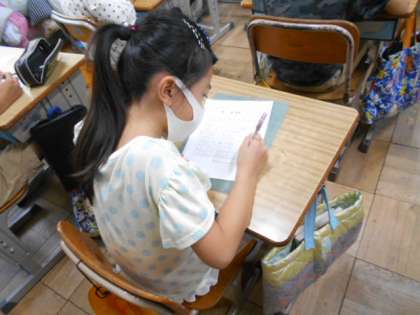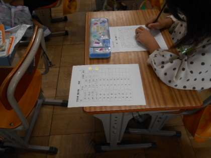 時間を計って九九の表を完成させます。速く正確に完成させることが目標です。一人一人が自分の正答率を上げ,タイムを縮めることをめざしています。