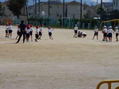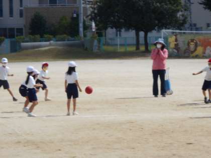 感染レベルが下がってきたため,体育でドッジボールをしています。子どもたちの歓声があがっています。