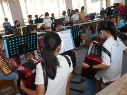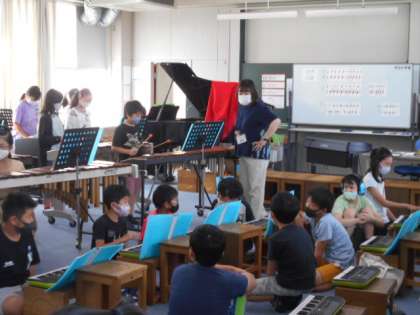 キリマンジャロの合奏をしています。AグループとBグループに分かれて演奏します。ずいぶん拍に乗れるようになってきました。