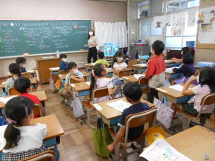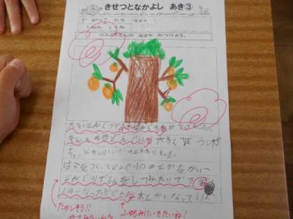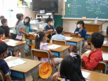 リス公園に校外学習に行った1年生。何を見つけたのか,これからどんなことをしたいのかを話し合っています。