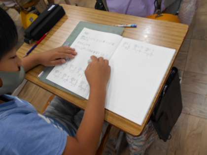 練習問題を解いています。2桁×1桁の筆算にずいぶん慣れてきましたね。