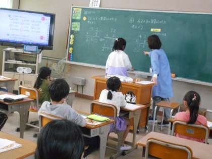 かけ算のひっ算をしています。どこから計算するのか,答えをどの位に書くとよいのかを考えています。