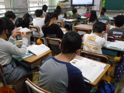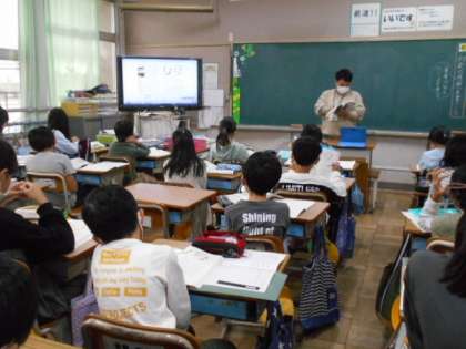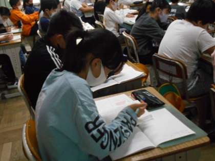 説明文を読み,初発の感想を書きます。範読を聞いています。