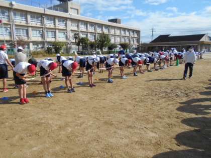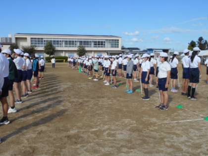 一つずつの動きを覚え,集団で合わせます。動きがそろうときれいです。