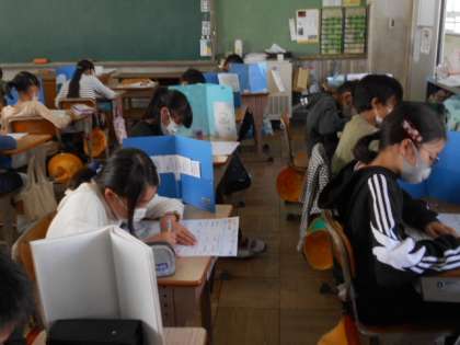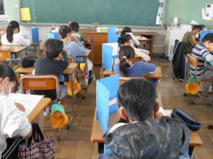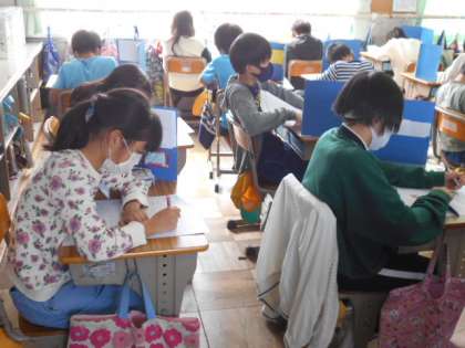 わり算のテストをしています。できたらしっかり見直しをしましょうね。