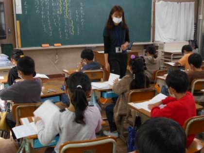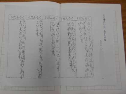 友達に知らせたいことや見せたいものについて,文章で表します。野田小学校のうさぎ「きなこ」のことを書いている人がいますよ。
