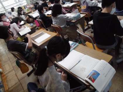 説明的な文章の学習です。例を挙げて書かれている文章の効果を考えます。