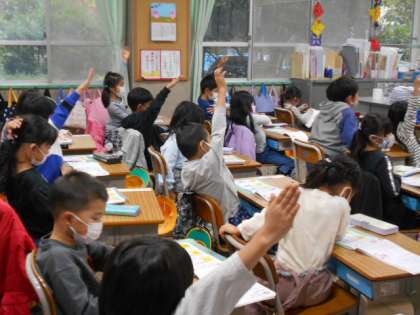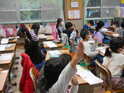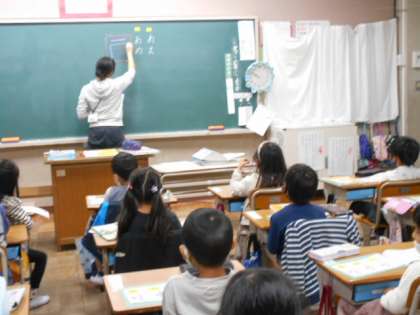 新出漢字の練習です。リード線によって分けられた4つの部屋のどこから書くとよいのかをしっかりと見ています。