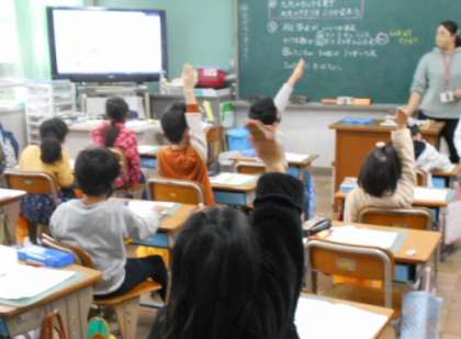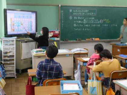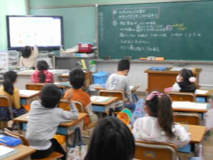 九九の表を見て決まりをさがします。「同じ答えがいくつかある」「かける数が2だと答えは2ずつ増えている」など,色々な発見があります。