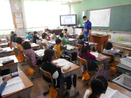 みんなで一つずつ確認しながら,7のだんを学習しています。