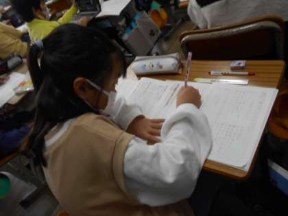 詩を作ります。組み立てを考えて連をつくったり,解説を書いたりしています。