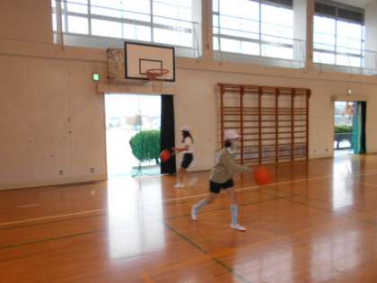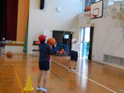 シュートの練習をしています。シュートがうまく入るコツを探っています。