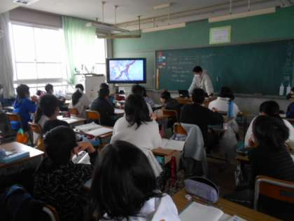 地震は大地に,どのような変化をもたらすのでしょうか。映像をもとに考えています。