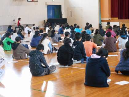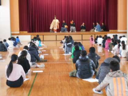 6年 能楽体験 公開日 2021/12/08 更新日 2021/12/08 6年生 本日は,能楽協会に方による「能」と「狂言」を実際に見せていただきました。日本の素晴らしい伝統文化に触れることができました。